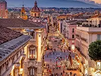 Today we head east to the picture postcard village of Cefalu, to explore its historic medieval gems, including the Cathedral of the Transfiguration, where we will celebrate Mass. After a festive lunch, we will journey to the foot of Mt. Etna to the ancient port city and baroque gem of Catania. After settling in, pilgrims are invited to gather for a special evening treat.